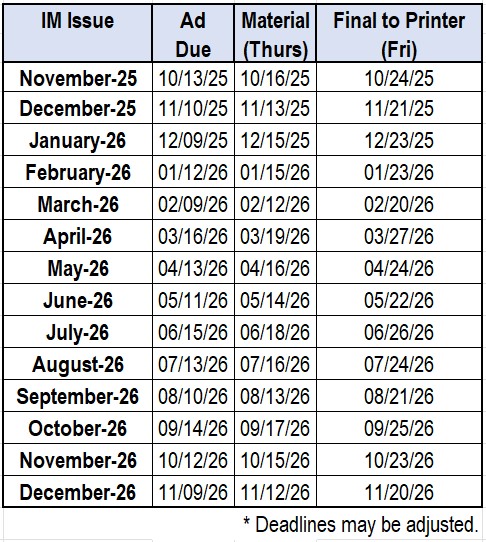 The IM will do its best to accommodate ads submitted after a given deadline as long as there is space available. If you have any questions regarding deadlines or availability of space, contact classifieds@afm.org.